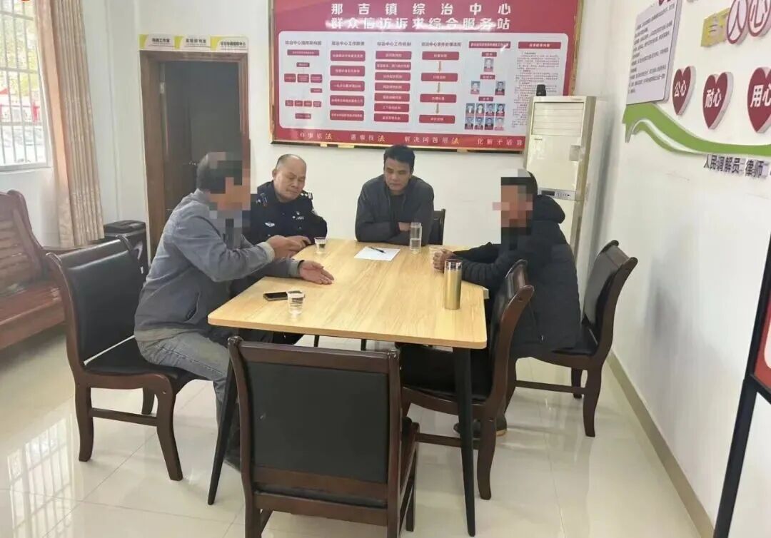 此前,那吉镇综治中心接到那西村岑先生反映养殖用水污染问题后,立即协调执法、环保、畜牧、水利等部门现场调查并促成双方和解。一桩桩“棘手事”依托“基层发令、部门执行”机制快速响应,有效整合派出所、司法所、村(居)委会及相关部门单位力量,形成“多方联动—分层过滤—闭环处置”的矛盾化解模式,不仅提高了调解效率,更筑牢了平安建设根基。今年以来,全镇成功调处各类矛盾纠纷18起,调解成功率达94.7%。