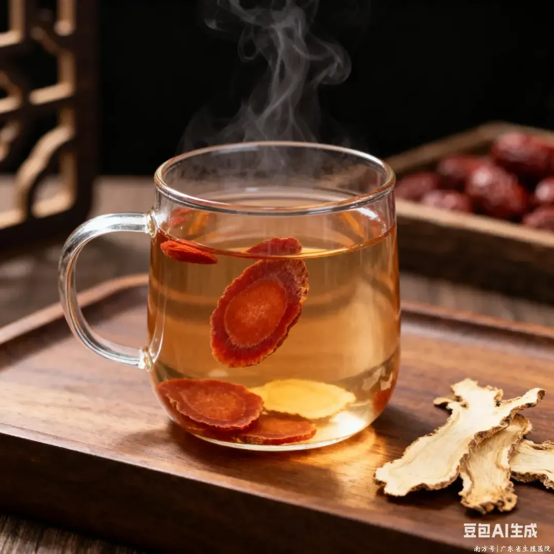 红参当归饮:红参片5g,当归5g,开水冲泡饮服。
